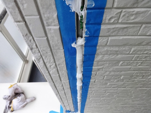 コーキング材には1液性(カートリッジ)と2液性のものがあります。伊東塗装では、やせが少なく性能が良い2液性のタイプを使用します。