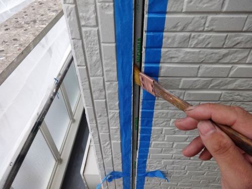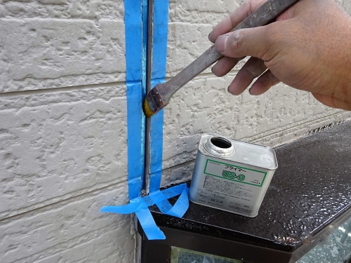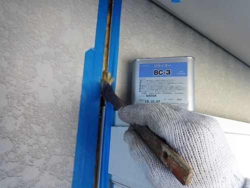 プライマーは仕上げのコーキング材にあった各専用の接着剤で塗り残しのないようたっぷり塗布します。