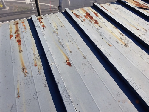 | 建物の一番重要かつ条件が厳しい部分と言えるでしょう。 トタンは「色あせ」から始まり塗膜の剥離が起こり、むき出しになった素材はサビが出て放置をすればそこから穴があいてしまいます。 こちらもやはり雨漏りの原因になります。 塗膜の剥離、サビが出たら塗替え工事をするのが良いかと思います。 |