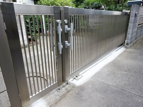 | 塩害による腐食が激しかったスライド・開き戸門扉をステンレス製のものへ変えました。 | |||