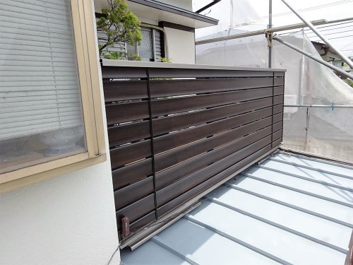| 2階ベランダから雨漏りがしていました。 ベランダ、トタン屋根を解体し、下地補修、トタン葺きを行い、アルミバルコニーを取り付けました。 |
