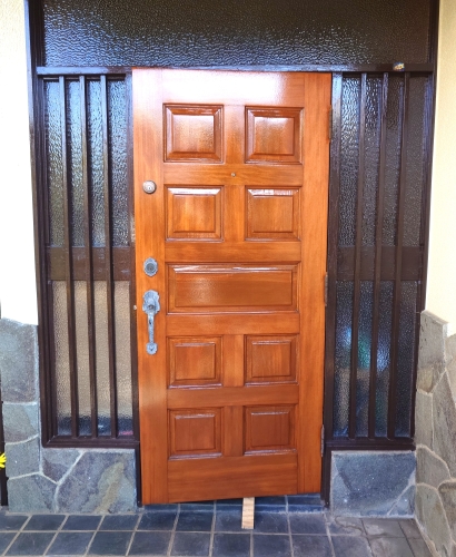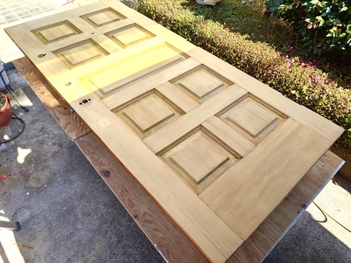 剥離剤使用の全面剥離を行い、研磨、薬品によるカビ取り、着色、クりヤー塗装で仕上げを行いました。