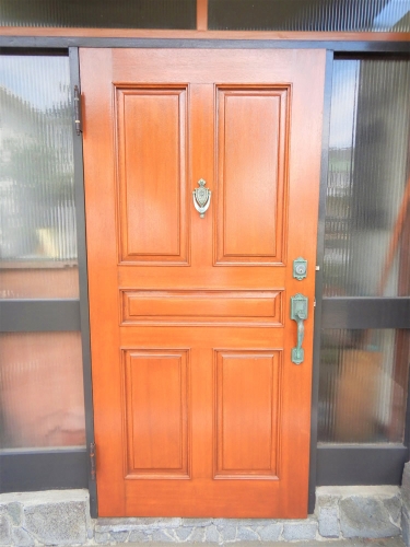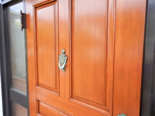 (玄関ドア塗装・木部あく洗い)