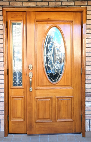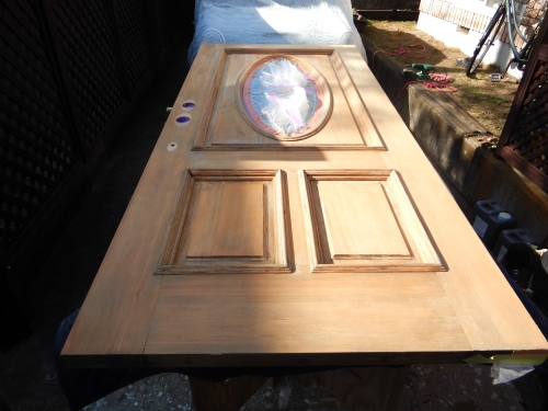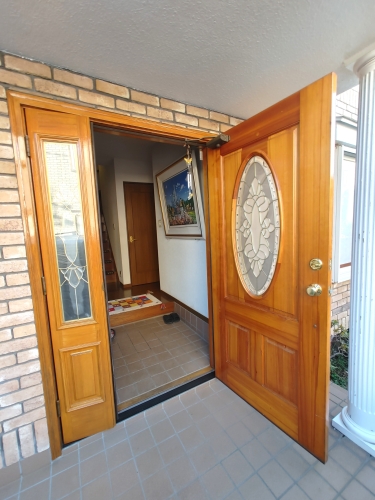 (玄関ドア塗装・木部あく洗い)