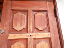 (玄関ドア塗装・木部あく洗い)