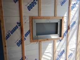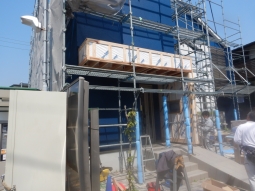 | 1,医院出入口外観(工事前) | 2,医院出入口外観(工事前) | 3,玄関庇下地組 | 4,化粧チーク板貼り | 5,看板埋込み枠取付 |